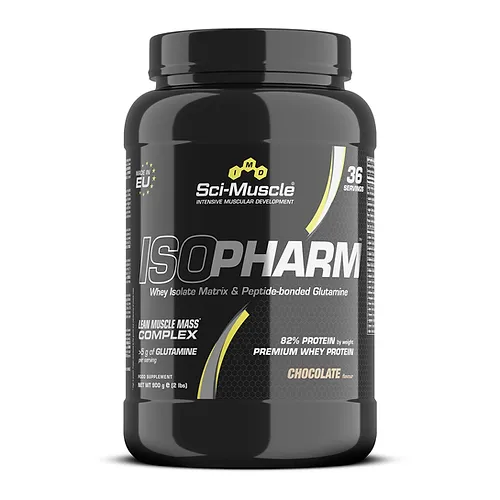 SCI-MUSCLE ISO PHARM™ ultimativni je oblik proteina sirutke, koji sadrži preko 83% proteina s vrlo malo masti i laktoze. Imajući najveću biološku vrijednost (BV) od bilo kojeg poznatog proteina, izolat proteina sirutke sadrži visoke razine esencijalnih i neesencijalnih aminokiselina. U proizvodnji našeg ISO PHARM™-a koristimo Cross-Flow mikrofiltraciju, delikatan proces, koji koristi filtre za odvajanje proteina od masti, kolesterola i laktoze na temelju molekularne veličine i težine. ISO PHARM™ sadrži više od 83 g proteina, ima nizak udio masti i laktoze, a bogat je kalcijem. Naše proizvodne metode pomažu u očuvanju biološke aktivnosti proteina sirutke osiguravajući da sve komponente za jačanje imuniteta ostanu netaknute.
